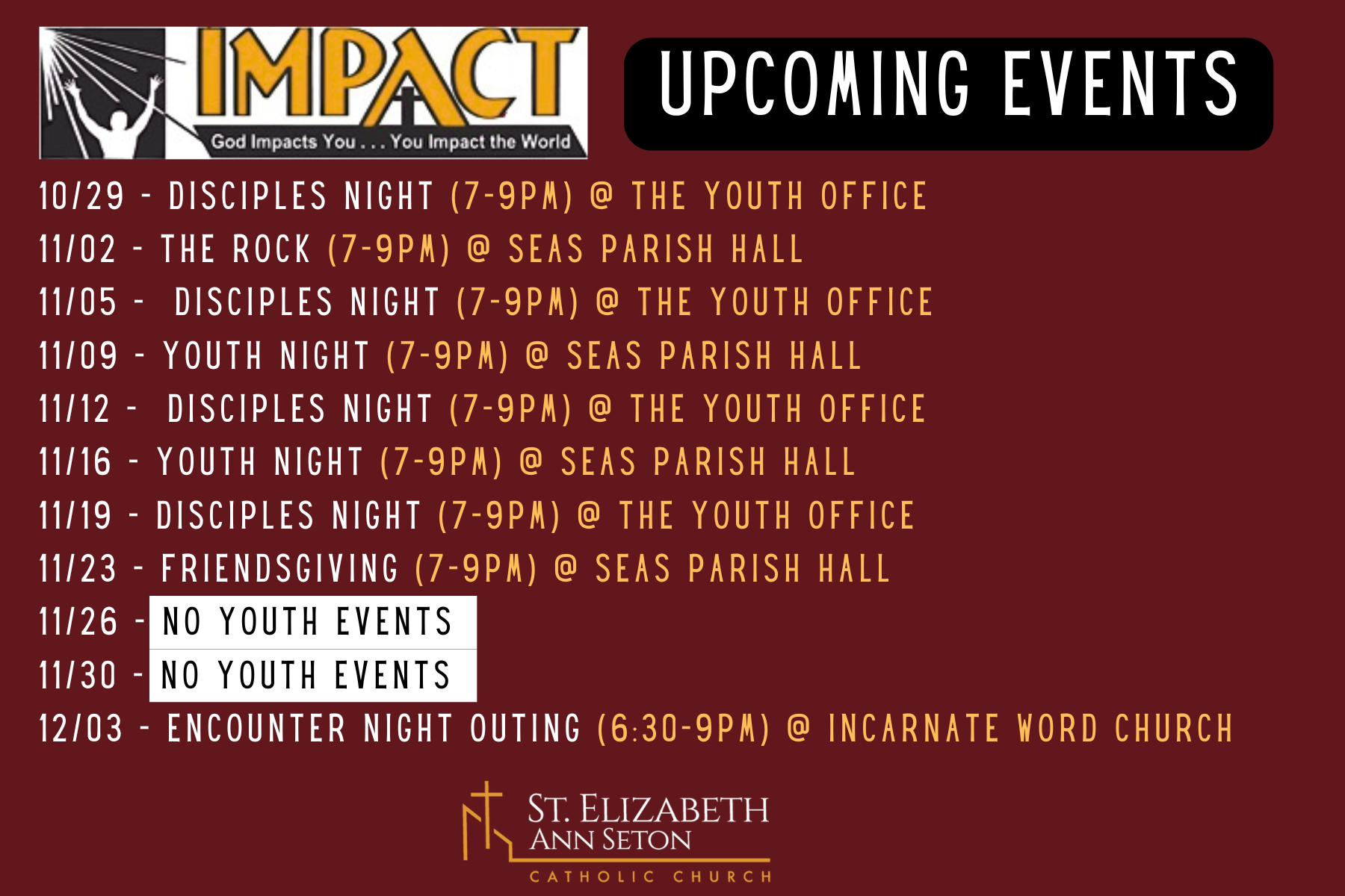 These nights are required for all students going through Confirmation prep at St. Elizabeth. The goal of The ROCK is for our teens to encounter a lived faith witness outside of the classroom, and encourage them to make a personal choice to follow Jesus. This event is run by our high school teens.