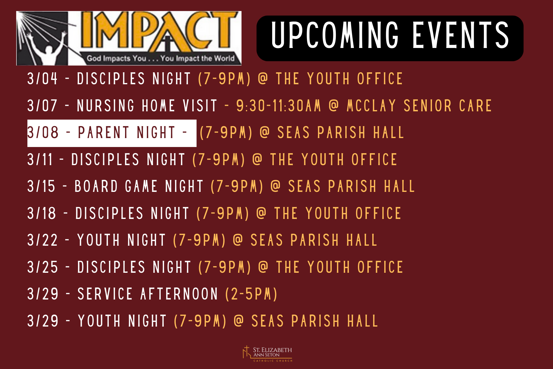 These nights are required for all students going through Confirmation prep at St. Elizabeth. The goal of The ROCK is for our teens to encounter a lived faith witness outside of the classroom, and encourage them to make a personal choice to follow Jesus. This event is run by our high school teens.